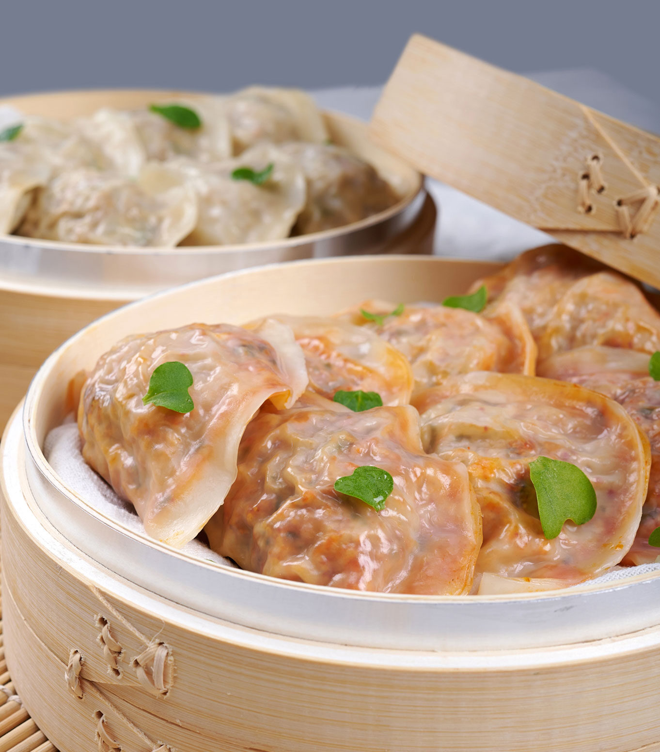 윤기있고, 속이 비칠정도의 얇은피와 최고급 냉장육을 사용했습니다. 재료들의 식감이 살아있고, 손으로 빚는 정성스러운 수제만두는 한마디로 표현하면 틈이 없습니다. 그만큼 한입 베어물었을 때, 입안을 가득 채울 정도로 속이 꽉차 있으며, 풍부한 육즙, 손만두의 식감, 속이 비치는 얇은피로 프리미엄 수제만두를 즐길 수 있습니다.